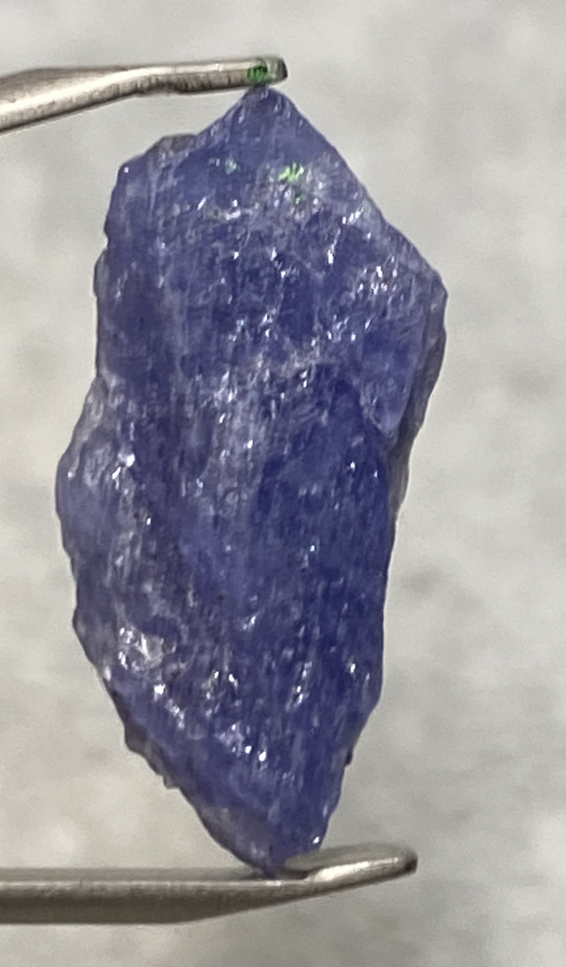 Tanzanit to kamień trzeciego oka, czakry korony i czakr ponad ciałem- łączy je i harmonizuje, co sprzyja otrzymywaniu wizji i informacji od Aniołów i duchowych przewodników. Pomaga łączyć energię umysłu z energią serca. Wspomaga wszystkie zdolności parapsychiczne. Sprzyja komunikacji, jest idealnym kamieniem dla mówców i doradców. Leczy duszę, pomaga znaleźć prawdziwe powołanie. Pomaga w stanach wyczerpania, przynosi dobre samopoczucie i wzmacnia pewność siebie.